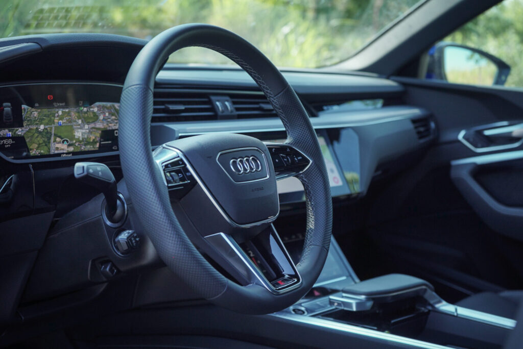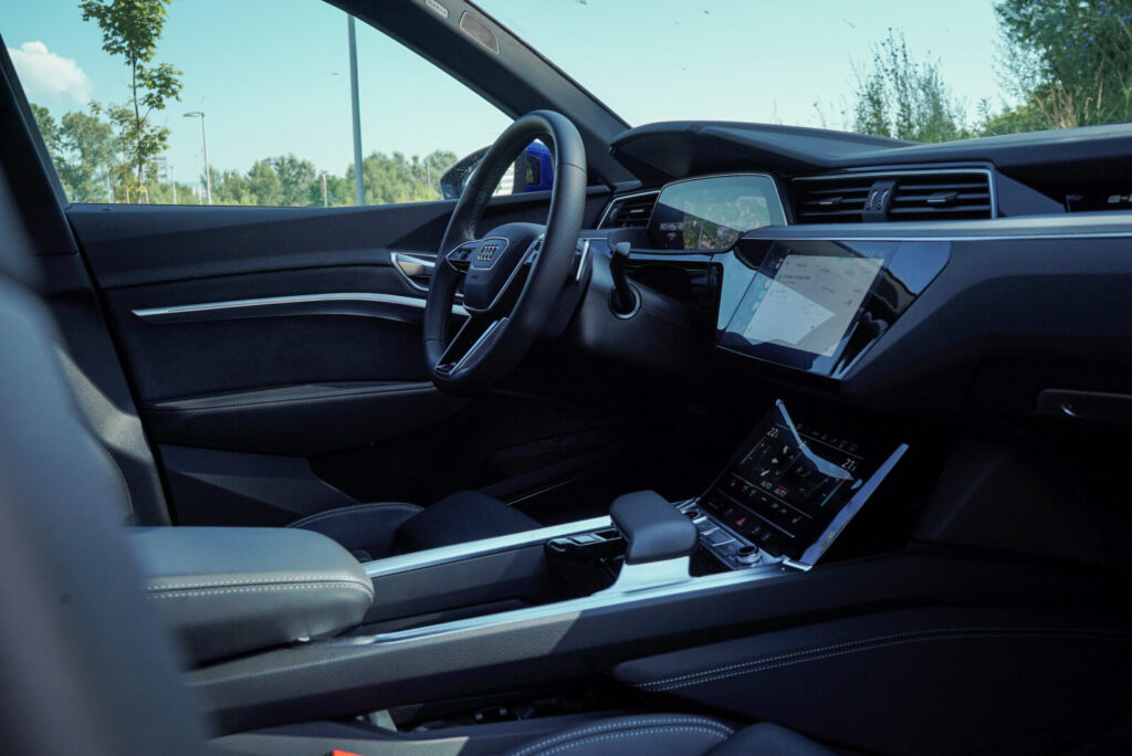 Unutrašnjost Q8 e-trona ostala je praktički jednaka onoj u modelu e-tron i to uopće nije loša stvar. Naime, kada sjednete u e-tron ili Q8 e-tron iz bilo kojeg drugog Audijevog premium modela, osjećat ćete se kao da ste doma. Okružuju vas vrlo kvalitetni materijali, sjedala su iznimno udobna, a tu je i poznati infotainment sustav opremljen Android Autom i Apple Car Playom.