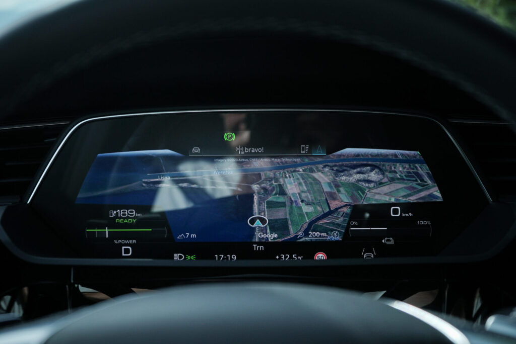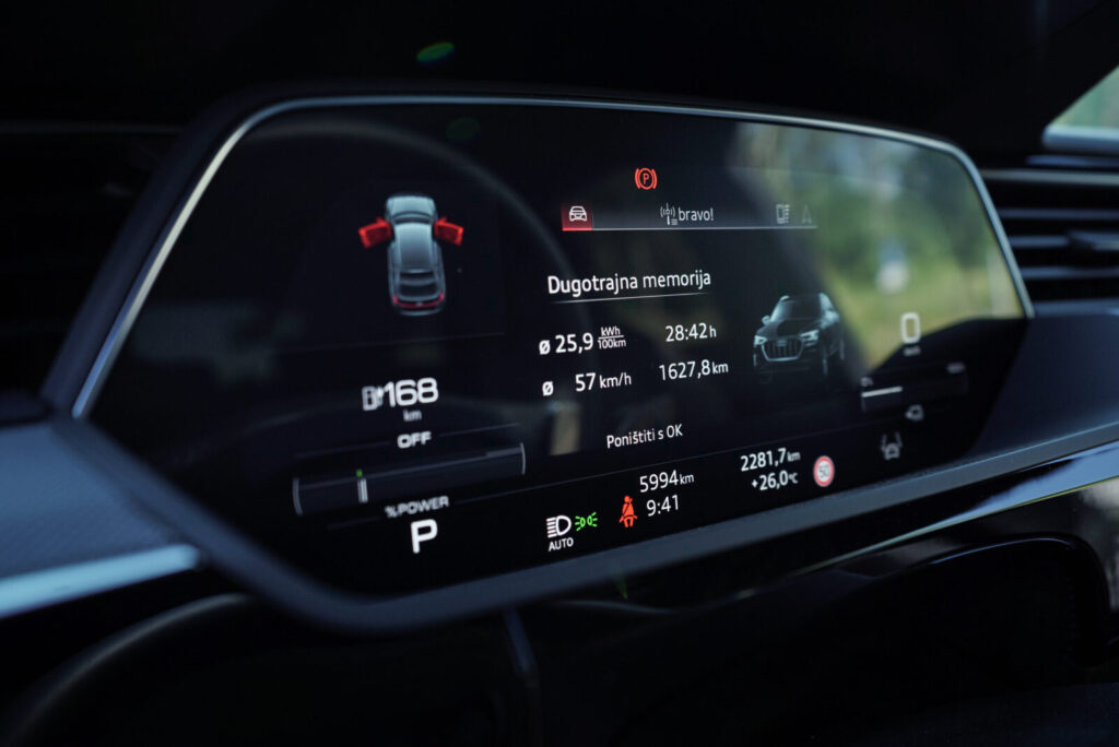 S druge strane, vožnjom po otvorenim cestama i gradu potrošnja je padala. Prosjek potrošnje na takvim prometnicama iznosio nam je oko 25 kWh/100 km prema čemu Q8 e-tron još uvijek ima vrlo dobar doseg – oko 415 kilometara. Vjerujemo da bi uz štedljiviju vožnju Q8 još znatno manje trošio, ali vrijedi dodati i da je klima uporno radila s obzirom na vanjsku temperaturu od 35°C.
